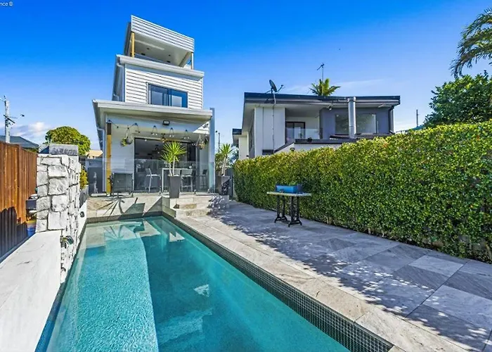 Luxury Modern Waterfront House别墅别墅位于黄金海岸的比格纳·沃特斯区.别墅设有室外游泳池,客人可以在这里放松身心. 住宿场所距离黄金海岸海港镇有2公里.